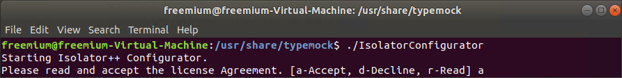 To set up the license run the IsolatorConfigurator from the /usr/share/typemock directory
